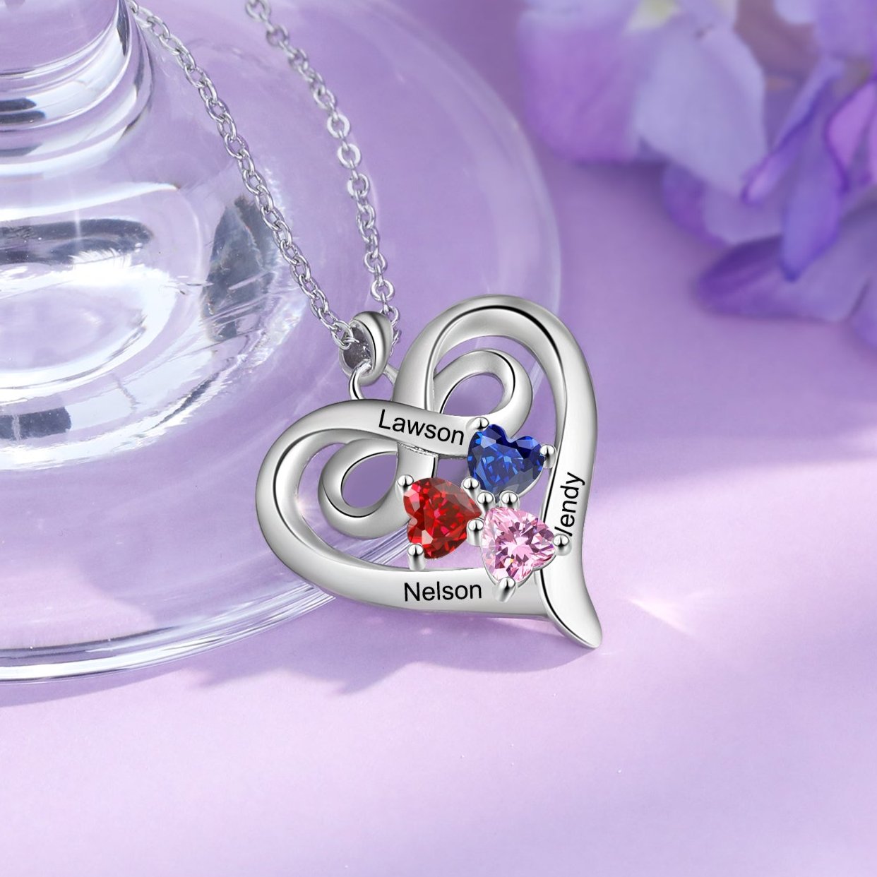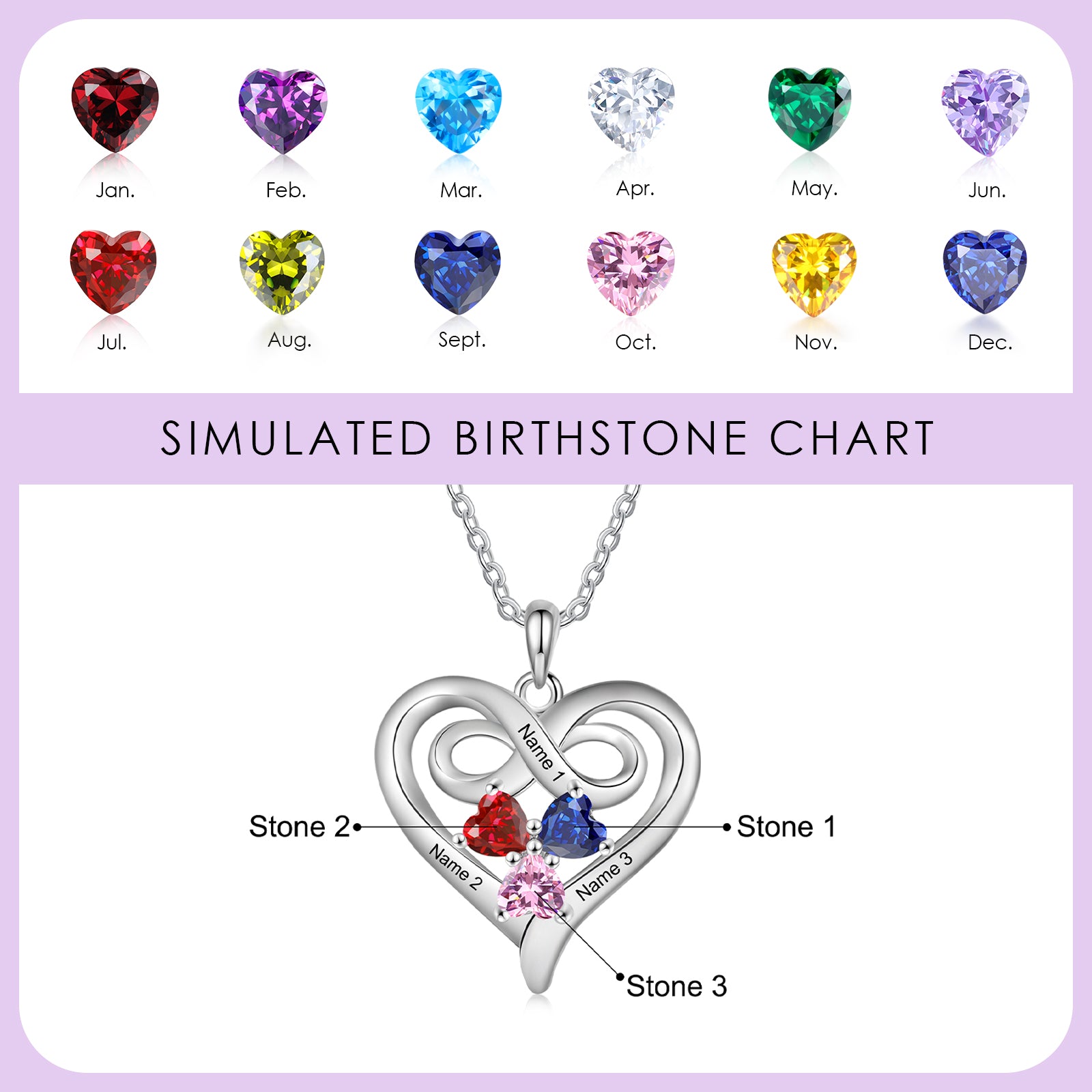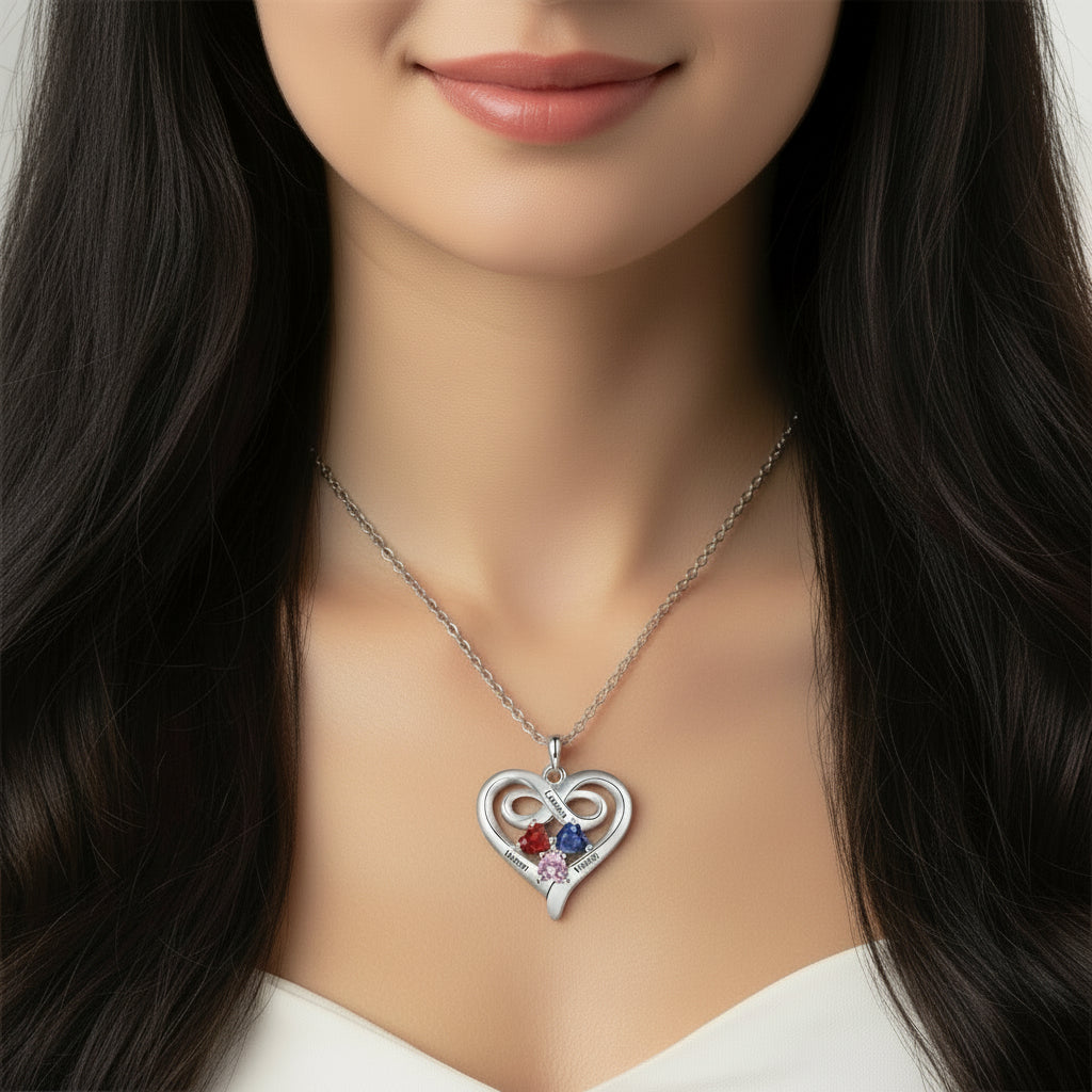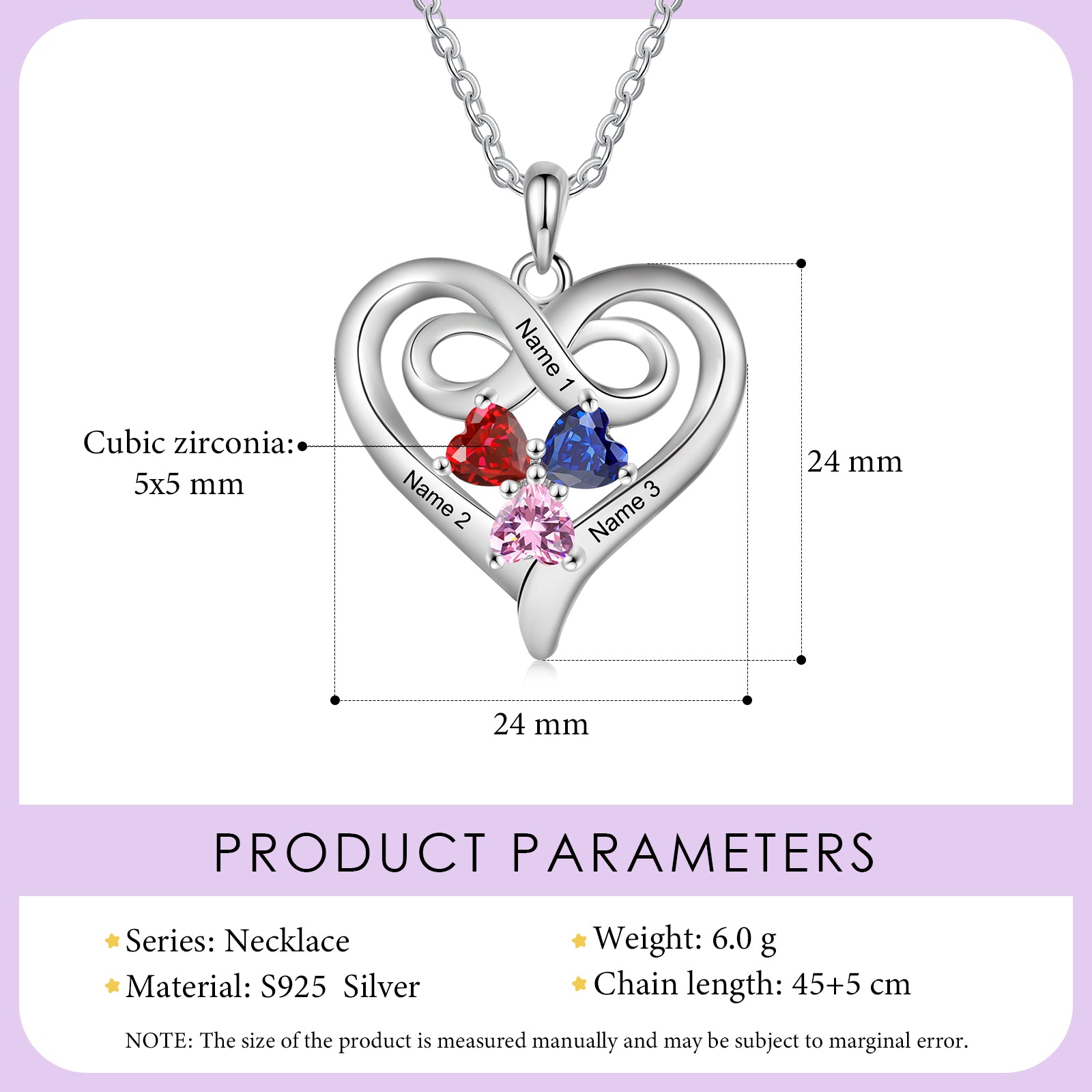 Wear your love for your child close to your heart with our Infinity Mother's necklace. This necklace is made of sterling silver and features an infinity symbol and child birthstones. Personalize it with engraved names for a meaningful touch. Show your infinite love for your child with this delicate and heartfelt piece.