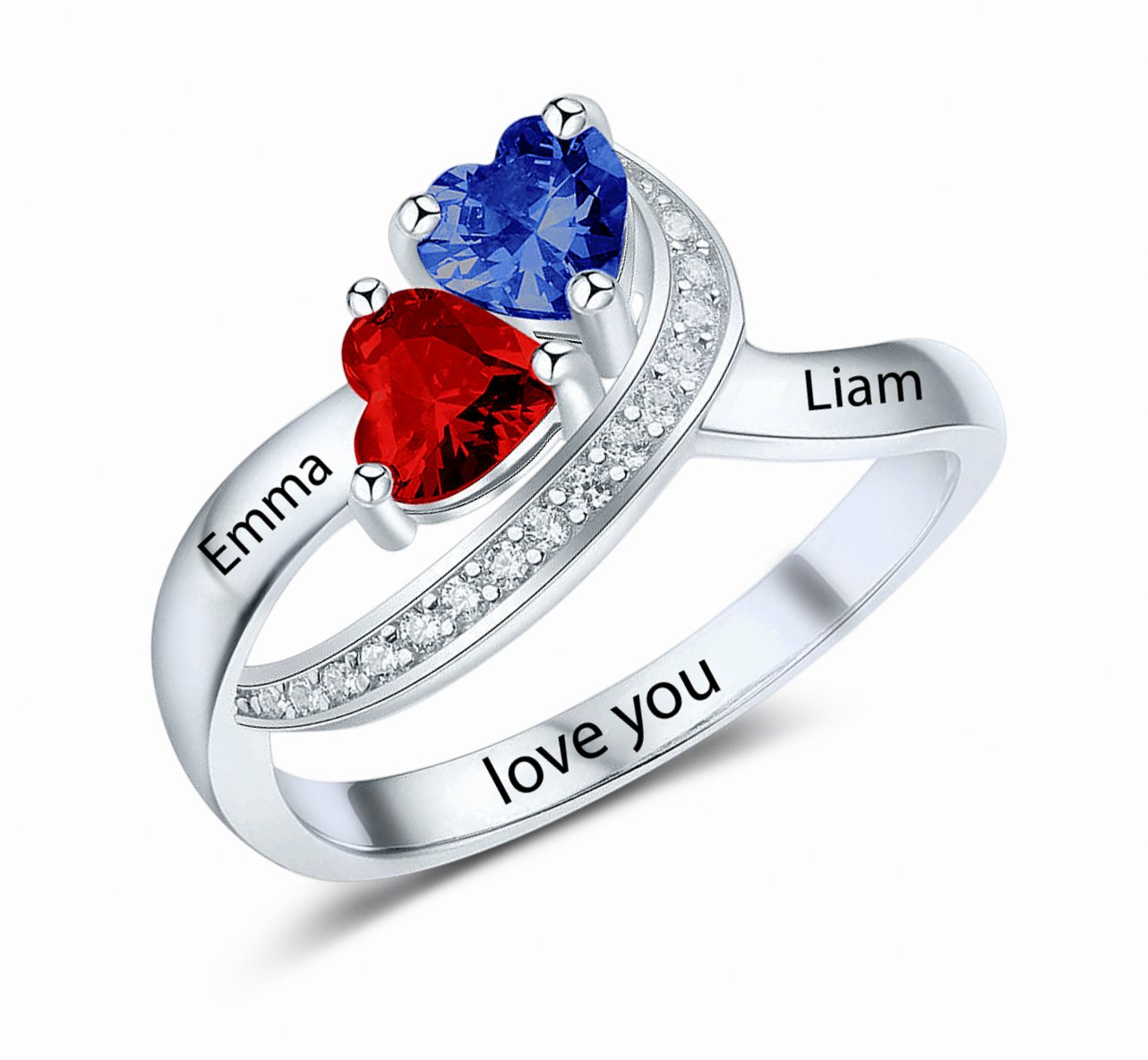 Personalized mother's rings with heart shaped birthstones. Choose from various designs and engraving options for the perfect gift straight from the heart!